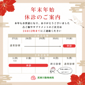 いつも武庫川動物病院をご利用いただき誠にありがとうございます。